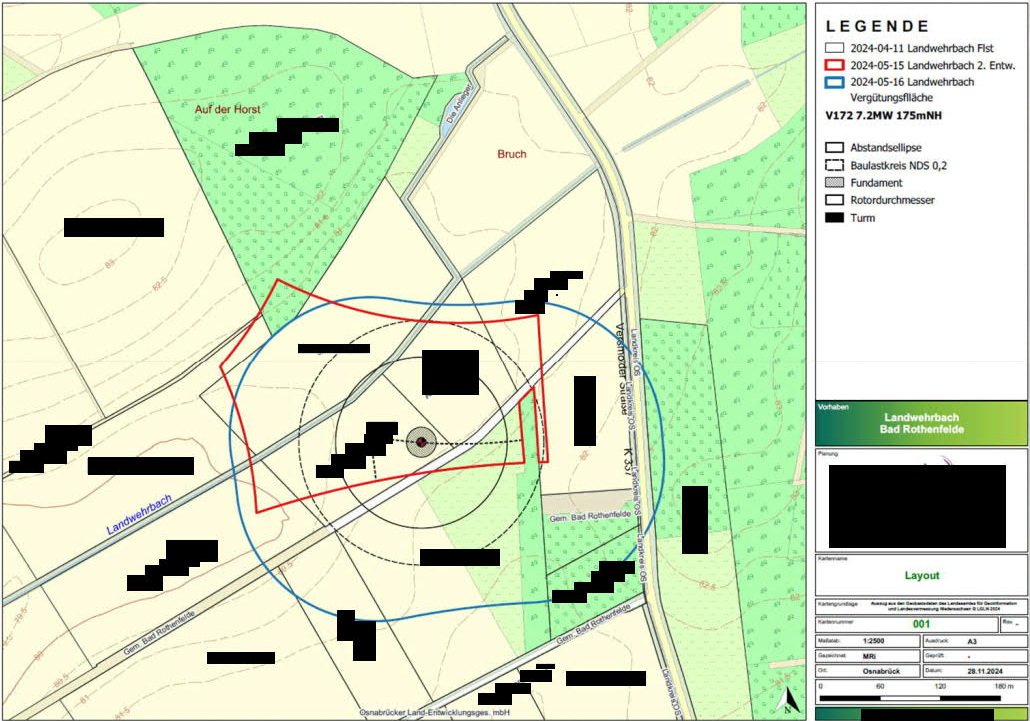Das nur zur Einleitung. Es geht natürlich im Folgenden um die moderne Windenergieanlage (WEA) im geplanten Bad Rothenfelder Wind-Vorranggebiet Aschendorf-Landwehrbach, mit den ungefähren Koordinaten 52.082717027950565, 8.147014214800603. (Fläche: 5.1 ha, = 0.3 % der Fläche der Gemeinde BaRo)